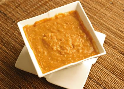 Puter rastopiti, dodati brašno i kratko propržiti.Dodati kikiriki, puter od kikirikija, soja sos, šećer, so i biber.