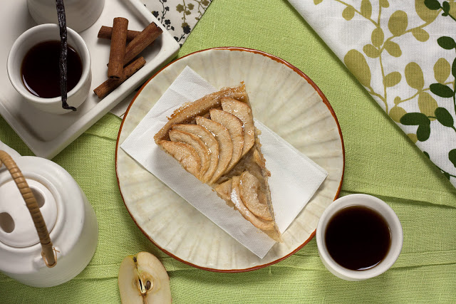 Nakon 20-ak minuta izvadite tart. Premažite sosom iz koga ste prethodno sklonili vanilu i cimet, a zatim naređajte jabuke. Ovlaš ih pospite smeđim šećerom i vratite u rernu.