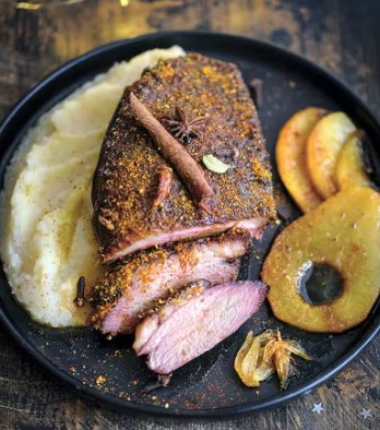 Posolite pačja prsa i premažite ih mješavinom začina. Stavite ih u posudu, dodajte štapiće cimeta i zvjezdasti anis , a zatim pecite 10 minuta.