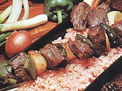Meso ocistiti od zilica i odvojiti od kostiju, iseci na kocke i nizati na raznjice.