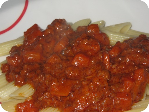 Očišćeno povrće narežite i pirjajte na 3-4 žlice ulja. Dodajte meso i popržite ga dok ne dobijete lijepu smeđu boju.Podlijte vinom i pustite da ispari na laganoj vatri. Posolite i popaprite po vašem ukusu prije nego dodate rajčicu. Meso će se, na taj način, začiniti vlastitim sokovima koje je izvukla sol.