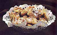 Lisnato testo otopiti, zatim tanje razvaljati, iseci na vece kocke i ostaviti po strani.