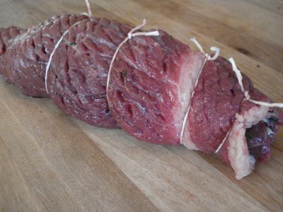 Meso izreite na tanke odreske, istucite ih batom pospite ih vegetom i na svaki odrezak slozite slaninu, mrkvu i kisele krastavce irezane na rezance.