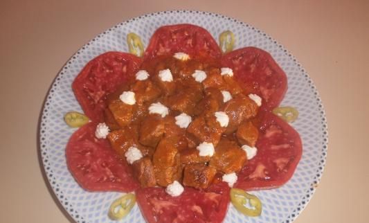 Meso iseći na kocke pa ispeći na roštilju. U šerpi na ulju propržiti sitno seckan crni luk, paradajz, peršun, biber i alevu papriku. Dodati pečeno meso i dinstati još 10-ak minuta.