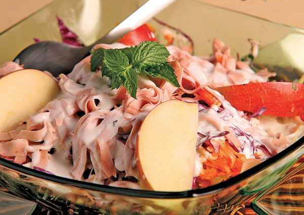Servirati mesnu vitaminsku salatu i preliti mešavinom jogurta i bosiljka.