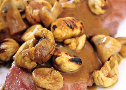 Servirati meso na tanjir i preliti pripremljenim „sosom“ sa kestenom.
