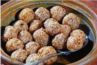 Gotove ćufte poredati na tanjir, te obilato posuti umakom i dekorirati peršunom.