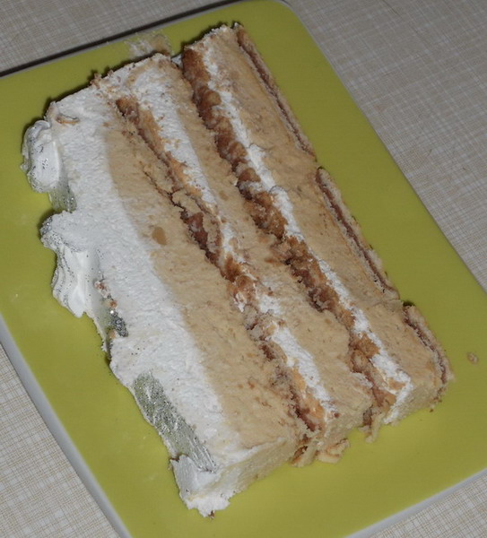 Skuvati puding sa 5 kašika šećera. Umutiti margarin sa 250g šećera u prahu, pa sjediniti ta dva fila.500g slaga umutiti sa hladnom kiselom vodom. Keks provlačiti kroz hladno mleko.