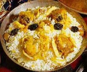 Meso brižljivo očistimo od žila i opni, operemo i isečemo na oko 2-3 cm velike kocke.Na ulju propržimo fino seckani ili ribani luk, stavimo meso i propržimo, potom dolijemo malo vode, posolimo i začinimo zdrobljenim karanfilićima, mlevenim cimetom i šafranom.