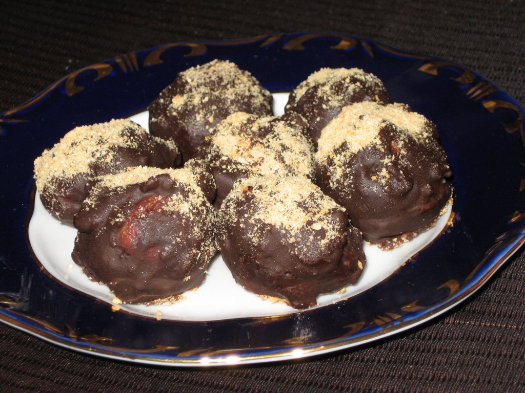 Napraviti smesu OD plazme, šećera, fante, suvog groždja I 250 g margarina. Praviti guglice. Otopite 200 g čokolade sa malo mleka I kuglice umakati u čokoladu I dok su vruće posipati plazmom.