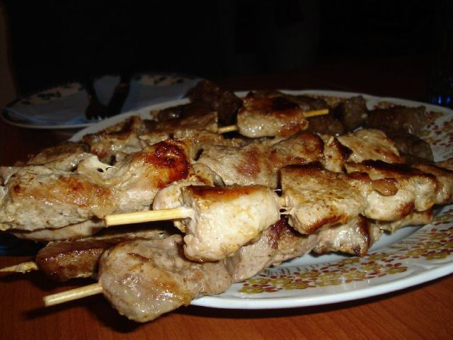 Za ražnjiće upotrijebite meso od vrata, plećke ili dijelova buta. Meso se izreže na manje ploške debljine 1/2 cm, koje zatim nanižete na drvene štapiće.