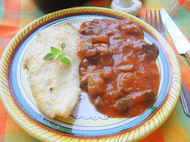 Belo meso u sosu od šampinjona i pohovane tikvice iz rerne