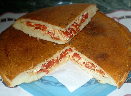 Isecite paprike na komadiće ili jednostavno iscepkajte, pomešajte sa sirom i posolite ostavite sa strane.