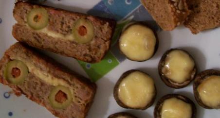 Zatim poslažite šnite tvrdog sira i masline, te preko toga stavite ostatak smjese mljevenog mesa.
