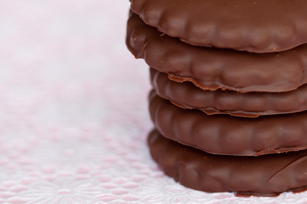 Kad se keksi ohlade, umočiti ih u čokoladu te staviti na papir kako bi se glazura stisnula.