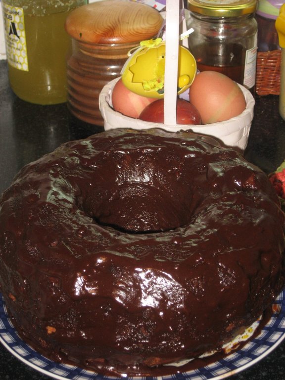 Umutiti jaja sa 200 g šećera zatim dodati brašno, mleko I 250 g margarina. Istopiti 100 g čokolade I dodati smesi zajedno sa suvim groždjem. Testo se peče na laganoj vatri oko 175 stepeni. Kada se kuglof izvadi, nafilovati Ga glazurom OD topljene čokolade I malo margarina.Prijatno!