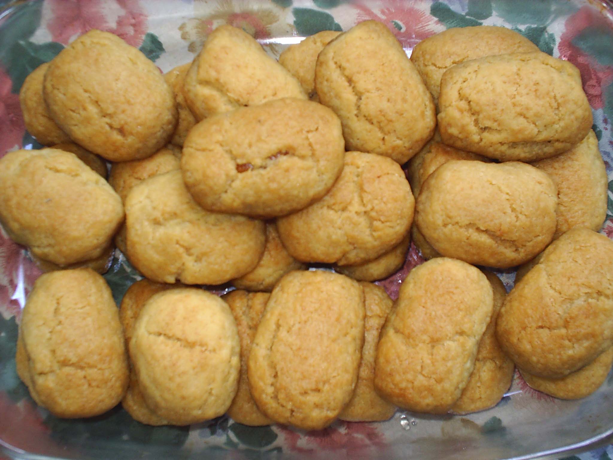 Testo napraviti od putera sa shecerom (onih 50 gr), jajima, brashnom i pecivom. Ovo glatko testo podeliti na 32 loptice. U svaku staviti po 1 badem i formirati mali cilindar (moze se pritisnuti na rende da dobije sharu na prednjoj strani).Redjati u veliki pleh od rerne (staviti u sredinu rerne)koja se prethodno zagreje na 180-200 stepeni. Peci oko 15 minuta, da malo zarumene.
