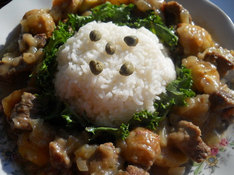 Na oko 20 minuta pre kraja kuvanja dodati oljušten kesten i kuvati zajedno sa mesom dok ne omekša, ali se kesten ne sme raskuvati.