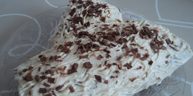 Oprezno odmotati biskvit, namazati polovicom kreme i saviti u roladu.