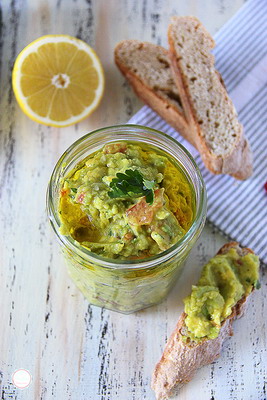 Avokado presecite na pola, izvadite košticu pa kašikom izvadite meso u činiju i izgnječite ga viljuškom.Prelijte limunovim sokom pa spremite ostale sastojke.