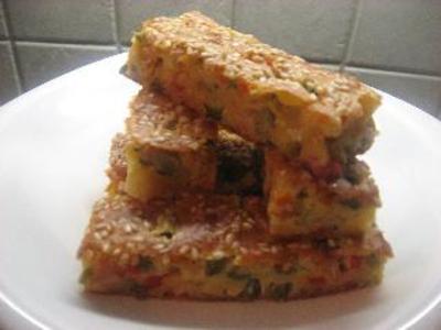 Umutiti, sipati u podmazan pleh, posuti susamom i ispeci.