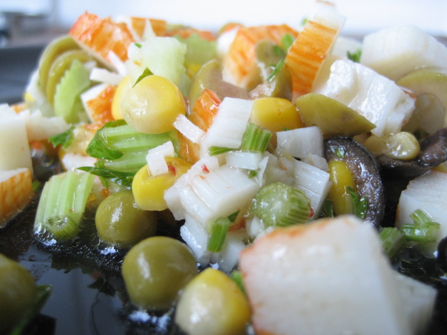 Surimi štapiće isjeckati dodati zajedno sa povrćem.