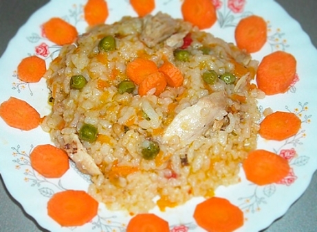 Skuvati parčad pilećeg mesa. Posebno propržiti crni luk, narendanu šargarepu i sitno naseckanu slatku paprika ( može i paprika iz turšije).