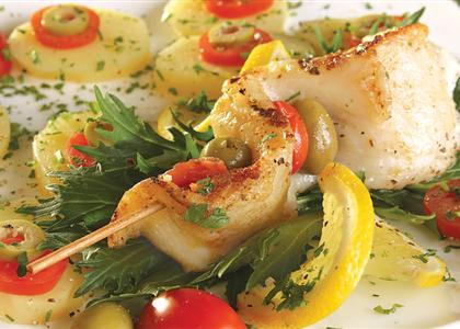 Ribu list iseći na komade i na žicu za ražnjić ređati redom: komadi ribe list, polovina čeri paradajza, maslina i tako redom dok se ne potroše svi sastojci.