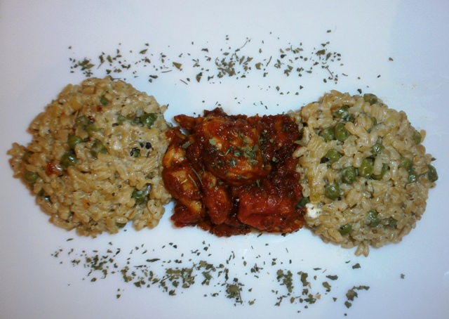 Po želji možete dodati i nasjeckani kikiriki. Umak pustiti da se malo ohladi i sjedini te poslužiti sa rižom i graškom.