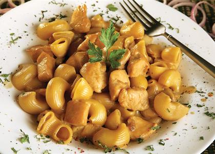 Na maslinovom ulju propržiti pileće meso isečeno na kocke.Dodati iseckane šampinjone, preliti biljnom pavlakom, vorčester sosom, posoliti i pobiberiti.
