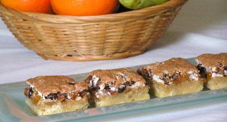 Bjelanjke istući u čvrsti snijeg, umiješati smeđi šećer i lagano suho voće.