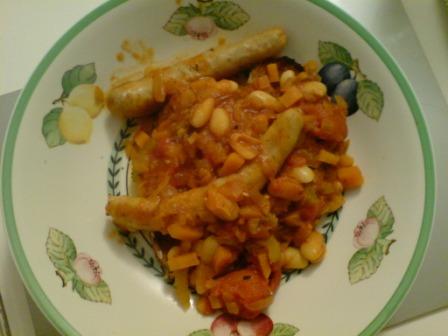 Posebno na masnoci pirjajte kosani luk, dodajte zlicu vegete, zlicu lovacke juhe, slatku crvenu papriku i papar prema zelji, podlijte juhom od graha i sve kratko prokuhajte. Taj umak dodajte u grah pa nastavite kuhati jos nekoliko minuta.