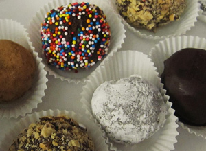 Dobro umesite smesu, oblikujte bombice, uvaljajte ih u krupan kristal šećer ili mlevene orahe i ređajte u korpice.
