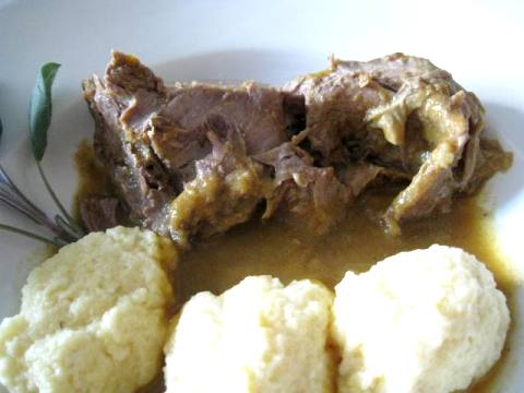 Meso vratiti u sos i poslužiti knedle kao prilog.