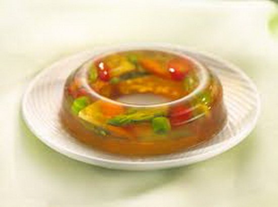 Želatin rastopiti u 200-300 ml hladne vode.Prokuvati 1l vode, kojoj su dodati biber i timjan.