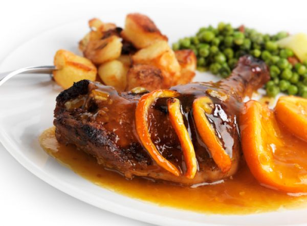 Njih dodajte u sok u kojem se dinsta patka, uz dodatak soka od druge pomorandže, pa kuvajte još 3 minuta.