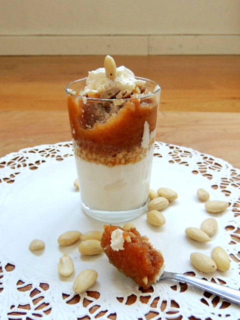 U 2 čase rasporediti slag pa po 2 kasike ljesnjaka pa kasu od nektarina i na vrh posuti bademima.