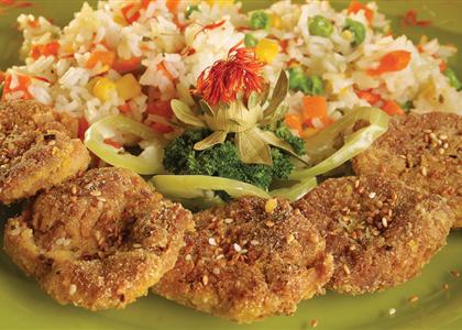 Ranije obarene komade soje začiniti, uvaljati u kukuruzno brašno pomešano sa susamom i zapeći u tiganju na zagrejanom ulju.