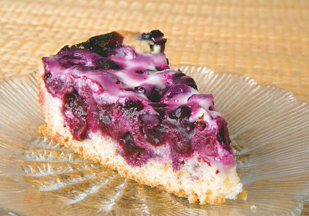 Izvađenu koru sa jabukama prevrnite tako da biskvit zauzme donju stranu, a jabuke gornju i na jabuke stavite kremu od kupina.