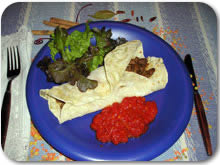 Poslužite zamotano u tortilje s umakom od rajčice i zelenom salatom.