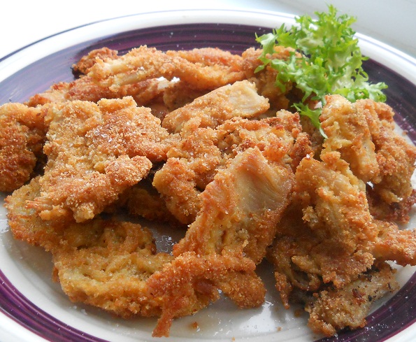 Škembiće izrezati na komade, još malo posoliti, uvaljati u brašno, razmućena jaja i mrvice (prezle).