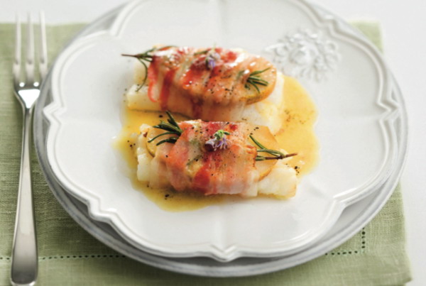 Riblji medaljoni sa kruškom i slaninom