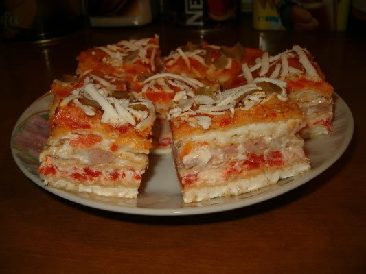 Treca tanko sir i sunka / praska sunka/ da pokrije koru ,