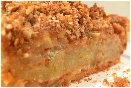 Ispeceno testo iseci u kvadrate, rashladiti, posuti mlevenim orasima ili lešnicima, pa preko toga staviti oljuštene i tanko isecene jabuke, koje treba na štednjaku s rumom, belim vinom i šecerom izmešati.