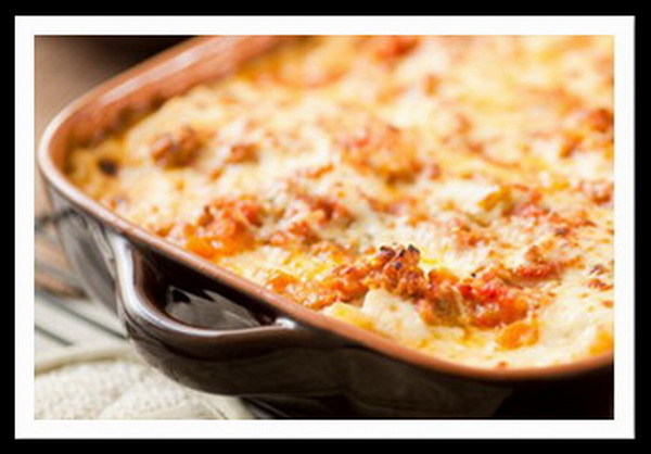 U vatrostalnu posudu slagati lazanje, bešamel, pa povrće...i tako do kraja. Na vrhu treba biti tijesto preliveno bešamelom.