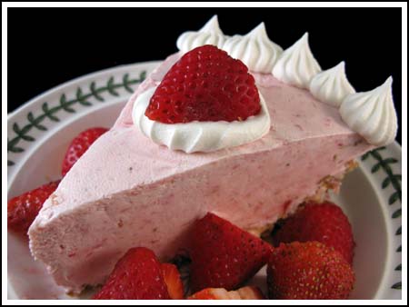 za 6 osoba): ulje za premazivanje, 225 g izmrvljenog biskvita, 100 g rastopljenog maslaca, 25 g smeđeg šećera, 225 g svežih jagoda, 2 jajeta (odvojite žumanca od belanaca), 50 g šećera u prahu, 4 kašičice želatina u prahu, 3 dl ulupane slatke pavlake, 2-3 jagode