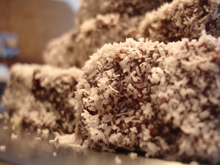 Kad se kocke prohlade pospemo ih odozgo sa preostalih 50g kokosa.(Stavljam po 3 kocke u šerpicu i okrecem ih sa dve viljuške pa ih vadim i redam na tacnu).