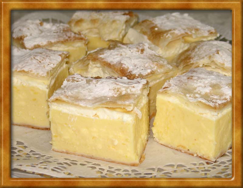 kore:Kupite smrznuto lisnato testo i od njega ispecite 2 kore. Najpre razvite oklagijom prvu koru, stavite je na prevrnutu tepsiju, izbodite viljuskom i pecite. Potom to isto uradite sa drugom korom. (Pazite da vam se ne prepeku).
