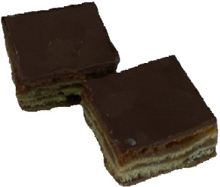 25 dag šećera, 8 kasika vode, 25 dag margarina, 35 dag mljevenih keksa, 15 dag mljevenih oraha, 5 dag čokolade za glazuru, kasika kakaa, 2 kasika ruma, 1 oblatna.