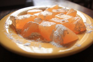 Dobro umesiti ratluk sa šećerom u prahu i razvući u tanku koru pravougaonog oblika.